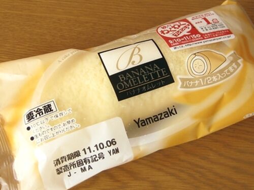 ヤマザキのバナナオムレット。 まるごとバナナとの違いが分からないwww 同じ味ですけど? バナナが1本まるごとか、半分か、って事ですか? まるごとバナナ好きなので、当然おいしく頂きました(*´∀`)