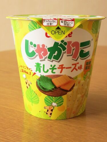 カルビーの《じゃがりこ 青しそチーズ味》。 噛んでると だんだんと青じその味が広がってくる。 地味においしい(*´∀`)