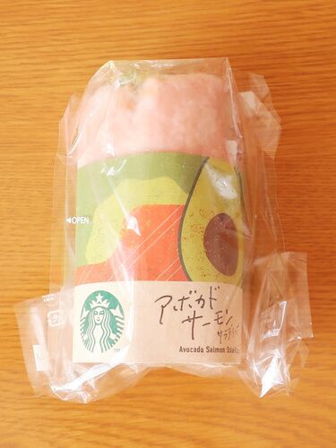 スタバの《アボカドサーモン サラダラップ》。 ピンクのトルティーヤ生地が かわいい♪ いつも通り、オーブントースターで温めてから食べました。 アボカドがトロトロ♡ サーモンも塩気があって おいしかった(*´ω`*)
