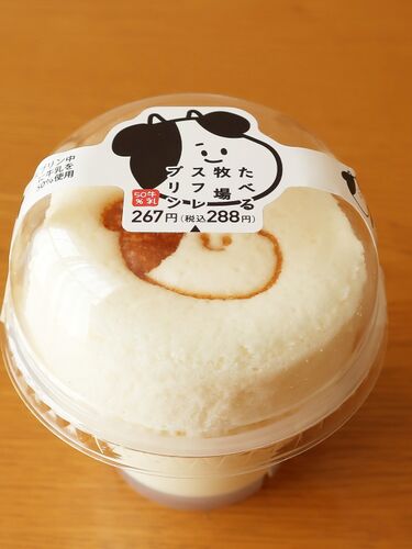 ファミマの《たべる牧場スフレプリン》。 スフレとプリンの間にクリームが入ってるよ。 スフレにスプーンを入れると、気泡が弾けてシュワシュワと音が! プリンは甘さ控えめ。 クリームが甘めなので、ちょうどバランスがイイ。 おいしかったです♪