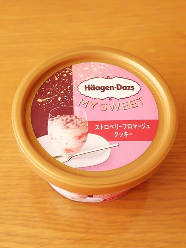 ローソン限定販売、ハーゲンダッツの《マイスイート ストロベリーフロマージュクッキー》。 ストロベリーソースが めっちゃおいしい♡ クッキー、ザクザク! ただ、ちょっと大きすぎるかな。 歯応えがありすぎて食べにくいw