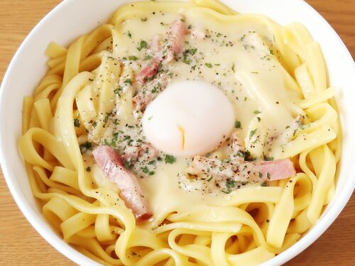 また やっちゃったorz予約投稿の時刻を間違えてしまったので、いつもの時間に投稿し直しました。 付けてもらった はてなスターは そのまま残してあります。 ローソンの《お墨付き 生パスタカルボナーラ》。 PASTA KITCHENの お墨付きのカルボナーラ。パスタ…