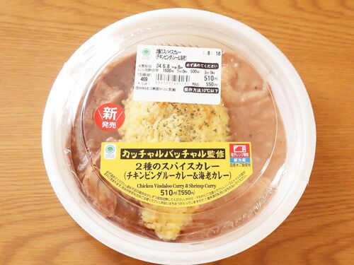 ファミマの《カッチャルバッチャル監修 2種のスパイスカレー チキンビンダルー&海老》。