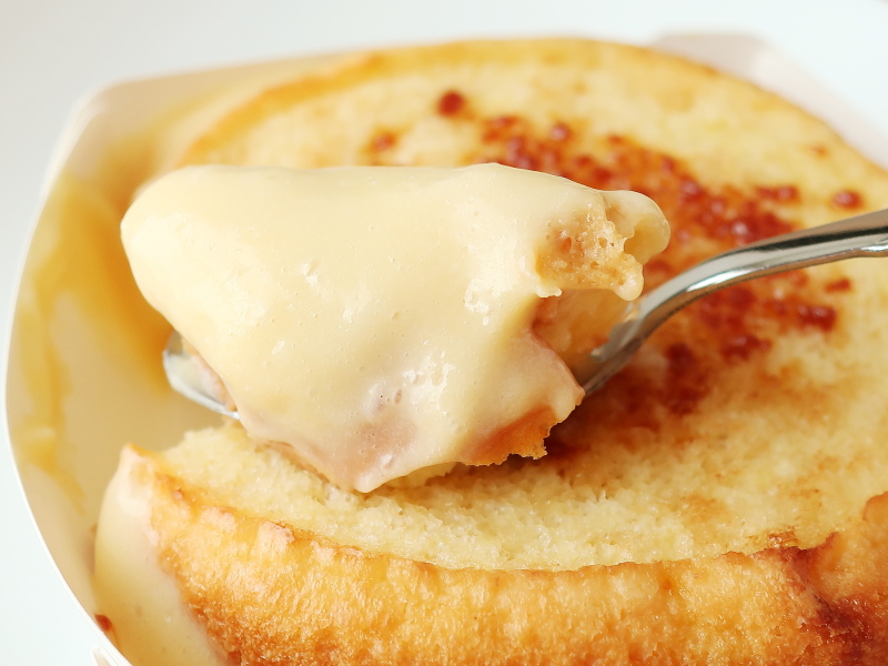 2022-09-06 八天堂監修 おぼれかすたーどのフレンチトースト 食べ物 ローソンと八天堂のコラボ商品、その3。 《八天堂監修 おぼれかすたーどのフレンチトースト》。 温め後。 カスタードクリームが あふれてる♡ 甘くて おいしかった♪