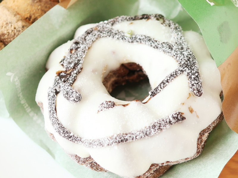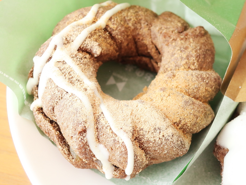 ミスドと祇園辻利のコラボ商品 第二弾《宇治ほうじ茶づくしシュー》と《宇治ほうじ茶シュー 栗あんわらびもち》。