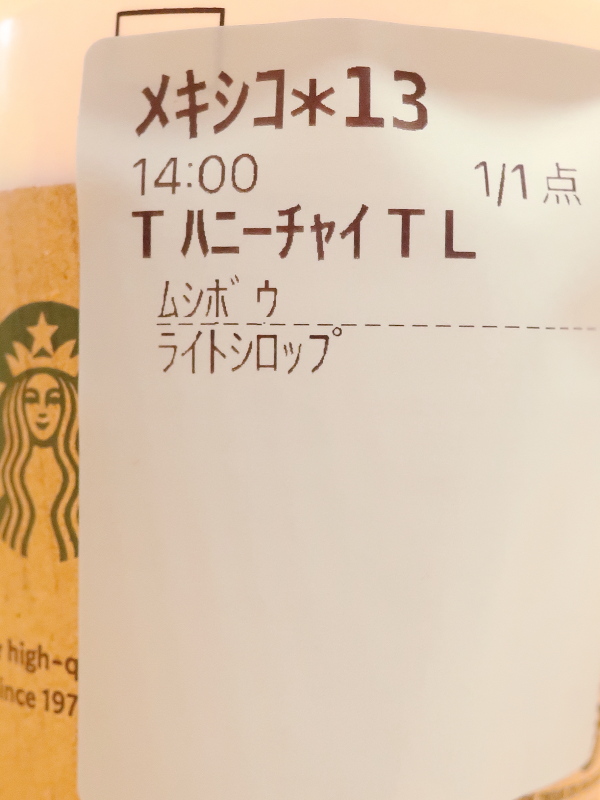 スタバの《ハニージンジャーチャイティーラテ》。